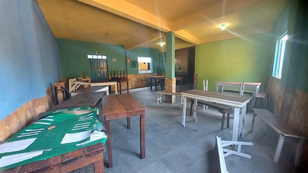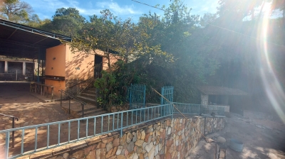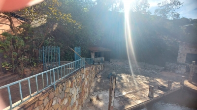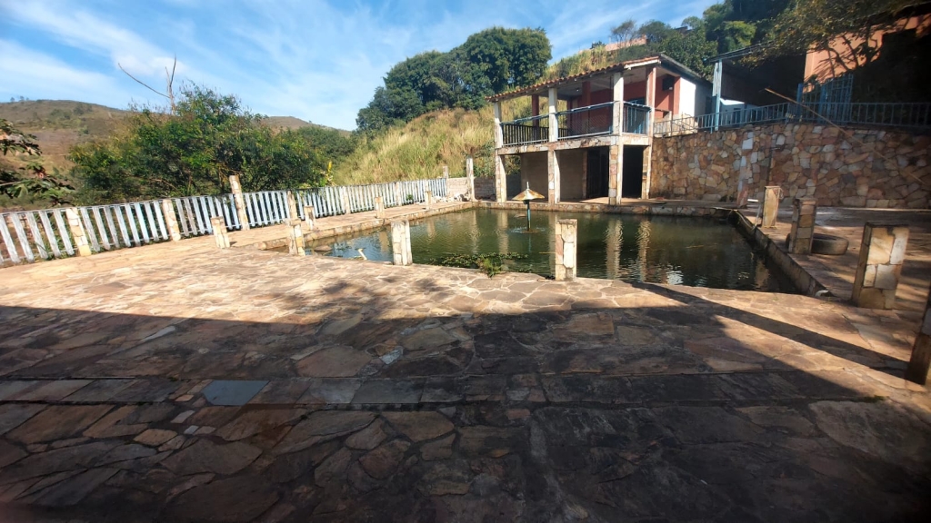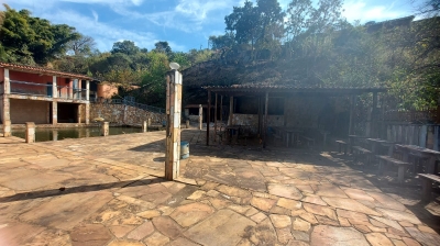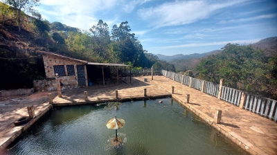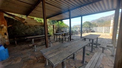 Salao com banheiro, mesas e cadeiras, cozinha, área externa com fogão a lenha, dois lavabos, ducha, suíte, palco com estrutura, piscina, churrasqueira, estacionamento. Vista maravilhosa para as montanhas