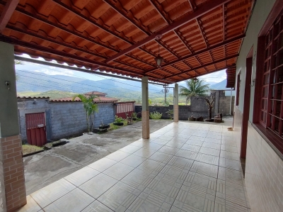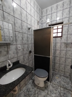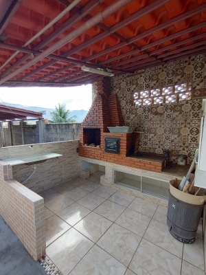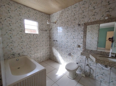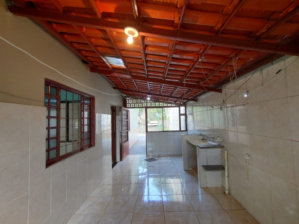 Casa com 5 quartos (sendo uma suíte do lado de dentro da casa e outra do lado de fora), sala, cozinha, banheiro social, lavanderia, área gourmet, área externa, jardim e garagem para até 8 carros.