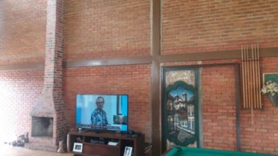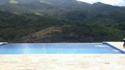 Casa com sala, três suítes, sendo uma com closet e banheira de hidromassagem, banheiro social, área gourmet com fogão a lenha acoplado com churrasqueira, sauna, linda piscina com borda infinita e ofurô para sete pessoas, galinheiro, pomar e horta.