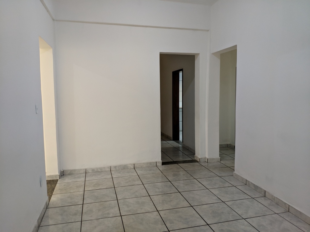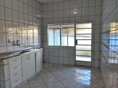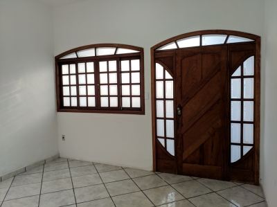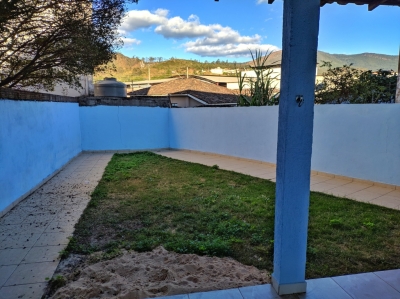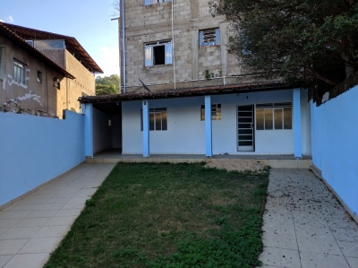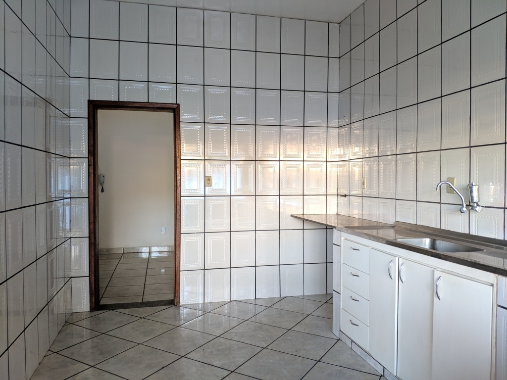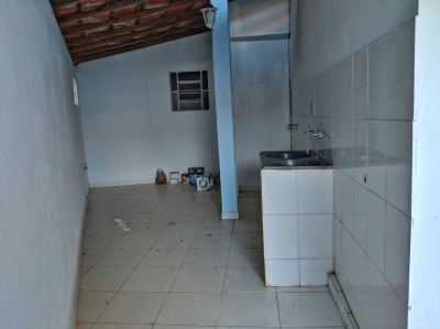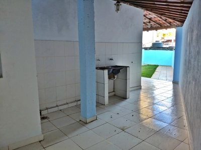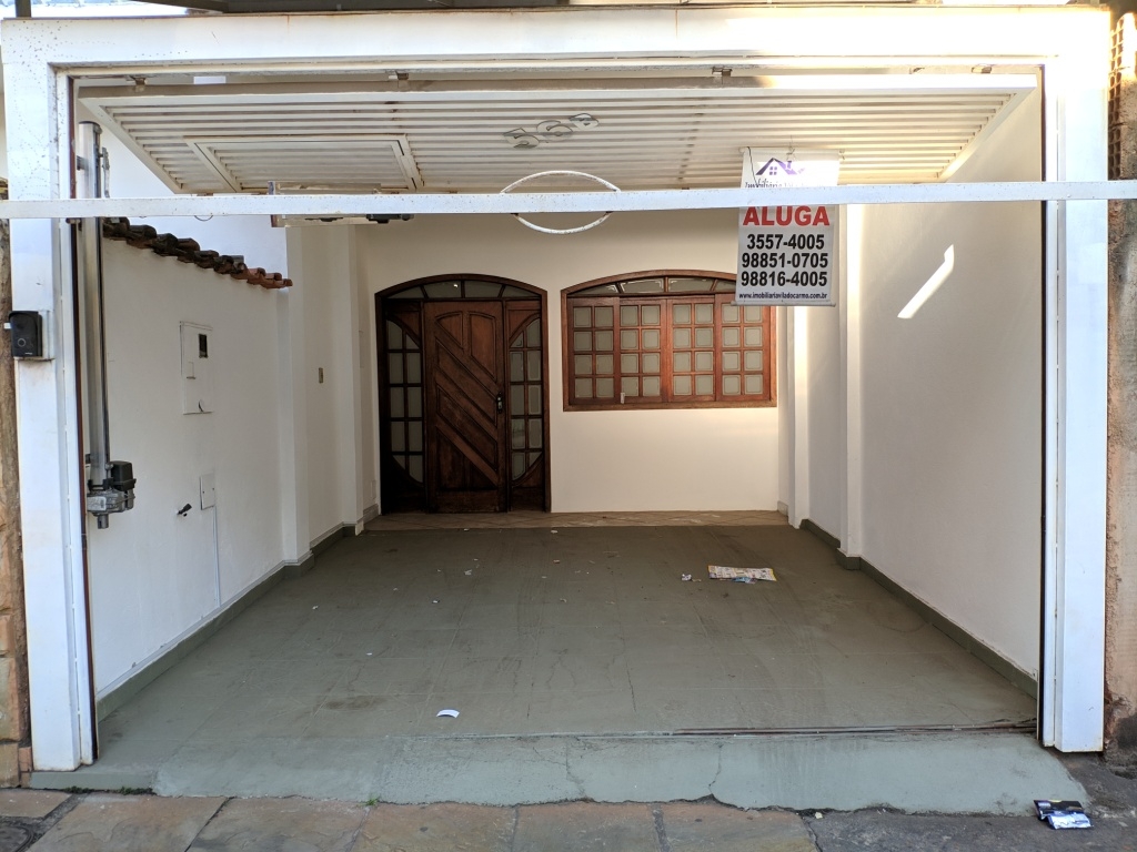 Casa com três quartos, sendo um suíte, duas salas, copa, cozinha com armários, área de serviço, área aberta, quintal e garagem.